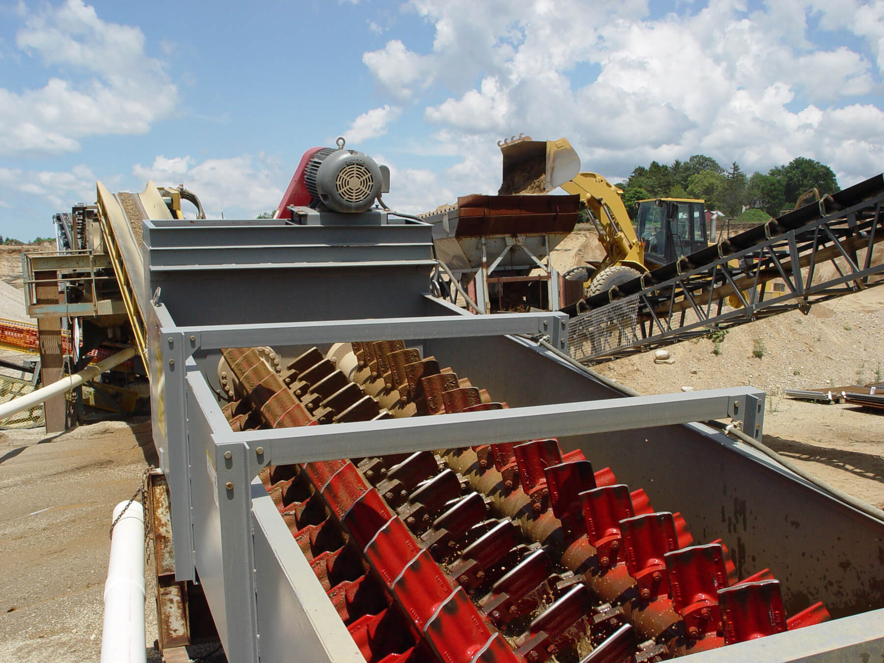 Fine Material Washers are used for washing, classifying and dewatering sand in aggregate wet processing applications. The rotating shaft of a Fine Material Washer causes feed material to tumble, providing particle-on-particle attrition. This allows deleterious coatings to be removed from the solids and discharged with the overflowing wastewater.